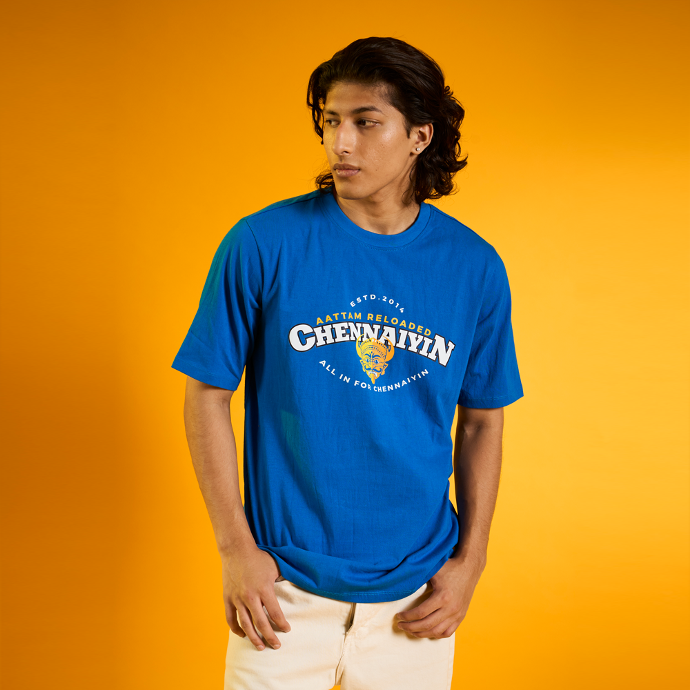 Show your Chennaiyin FC pride with this casual cotton tee in the club's iconic blue color, perfect for any fan. Featuring the team’s bold logo on the chest and the powerful mottos for the 2024-25 season, this tee symbolizes the unwavering spirit and ambition of the club. Crafted from soft, breathable cotton, it ensures comfort while you support the team through every match. Whether you're at the stadium or out and about, this tee lets you wear your Chennaiyin FC passion in style. Get ready to stand strong with the Blue Tigers on their quest for glory! Style Code:- 656-CHENYNFC-50S
