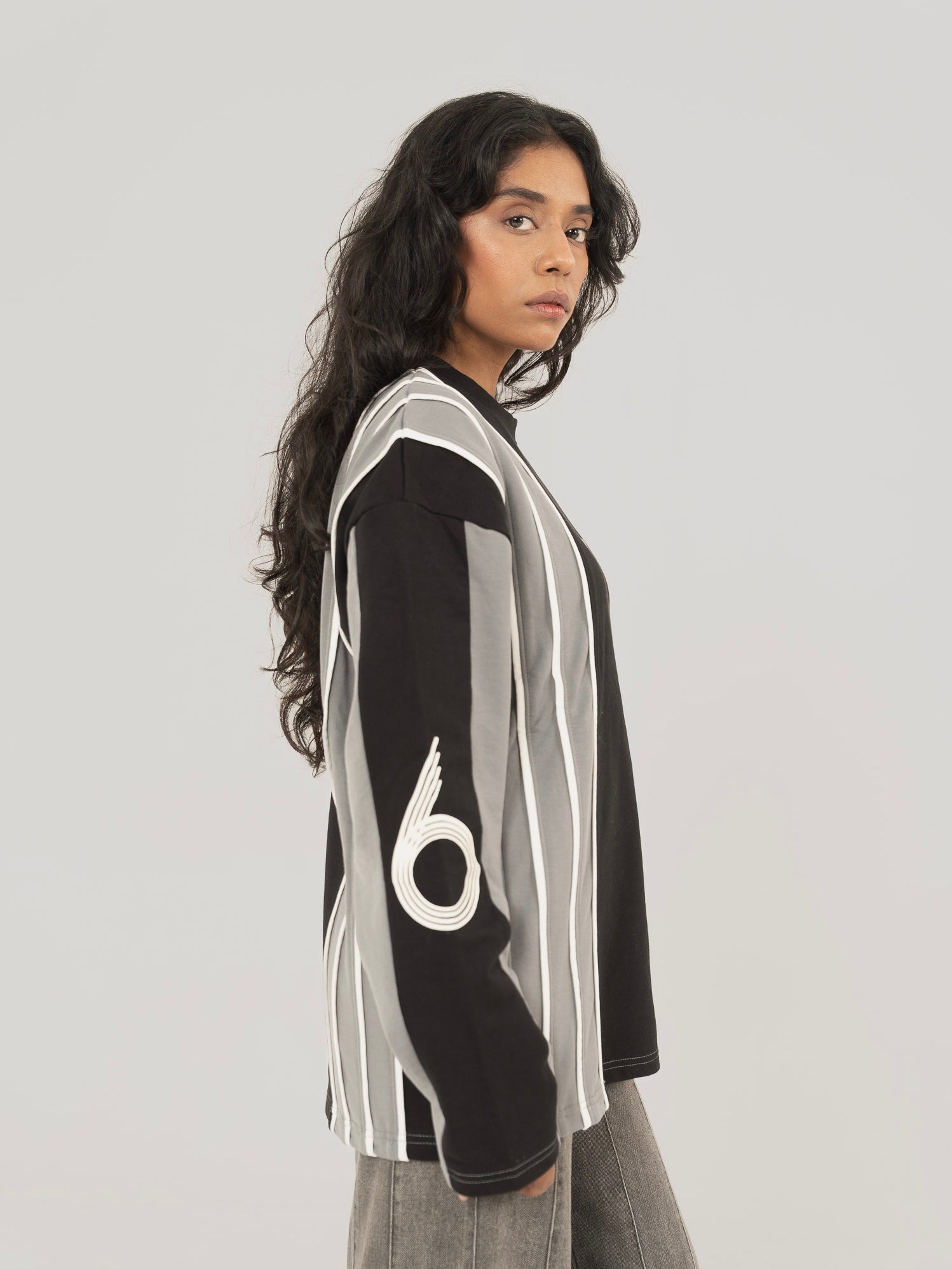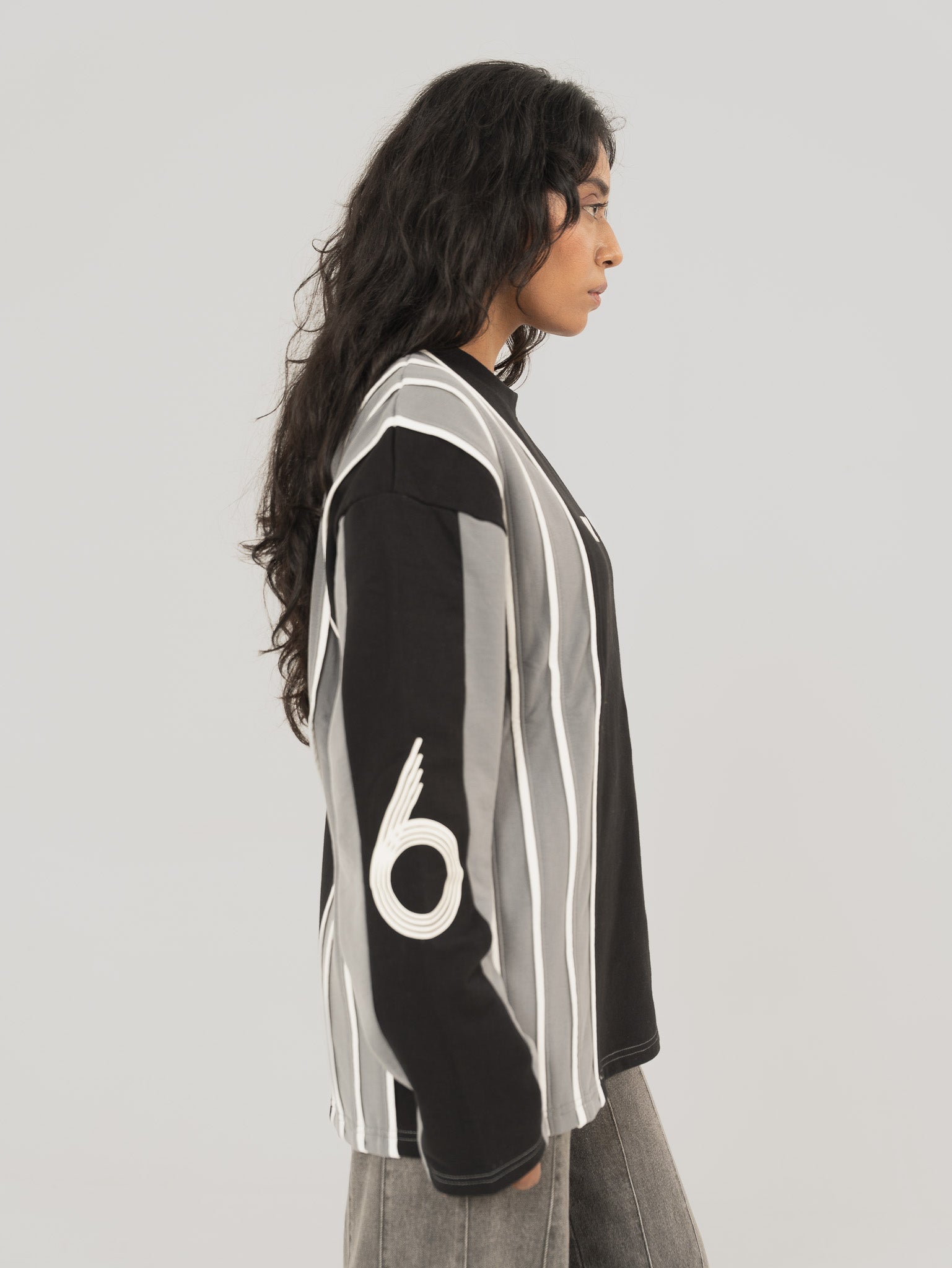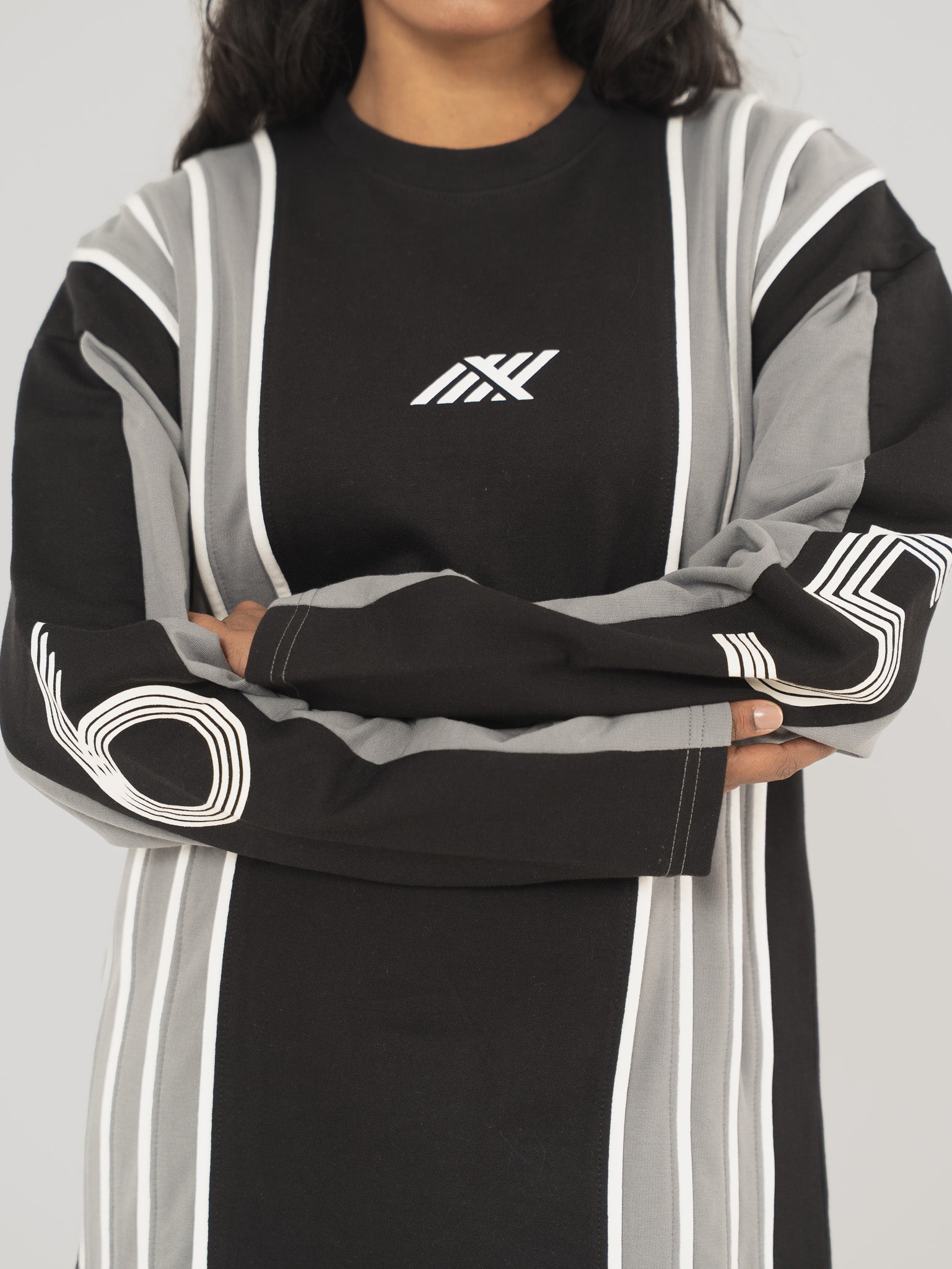 Crafted in 240gsm cotton terry, the Frost Tee translates the geometry of a running track into garment form. Cut and sewn in contrasting panels, cotton bindings curve across the front and back, as if a race track was draped across the body, tracing movement through form. The piece balances technical precision with a relaxed, structured drape, showcasing our SIX5SIX monogram in raised 3D print at the centre, and concentric 6 and 5 sleeve motifs that echo motion and flow. A study of construction, rhythm, and sport-inspired design, built for everyday movement, redefined through craftsmanship.