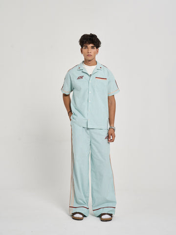 These striped trousers extend the shirt’s story, combining laidback comfort with refined detailing. The semi-elasticated back waistband ensures an easy fit, while beige poplin side stripes and a red stitched hem binding mirror traditional sports tailoring. Contrast pocket trims elevate the look, while the SIX5SIX monogram at the front pocket ties it back to the brand’s sport heritage. With its relaxed drape and sophisticated finishing, the design channels the casual formality of vintage cricket attire, ideal for resort settings or leisurely travel. .