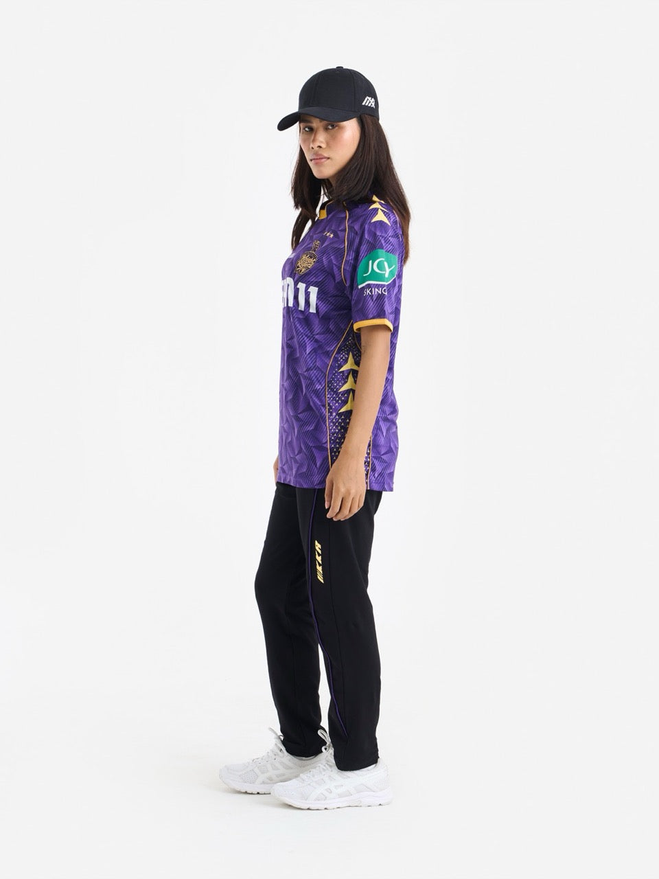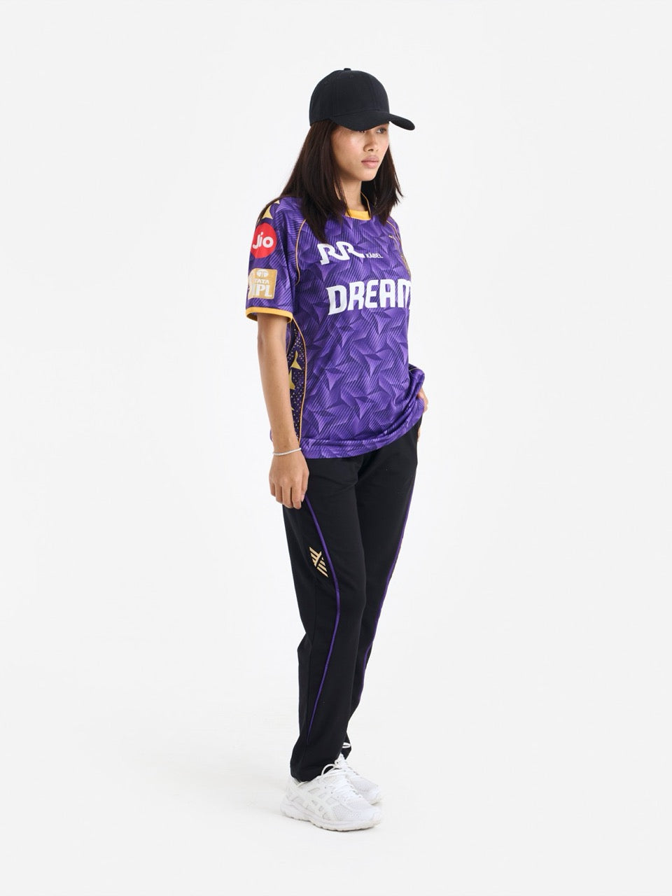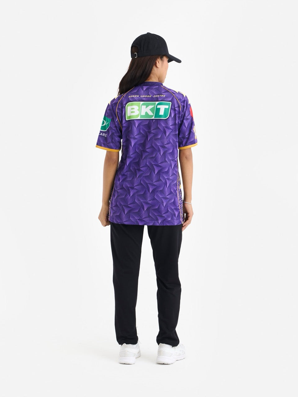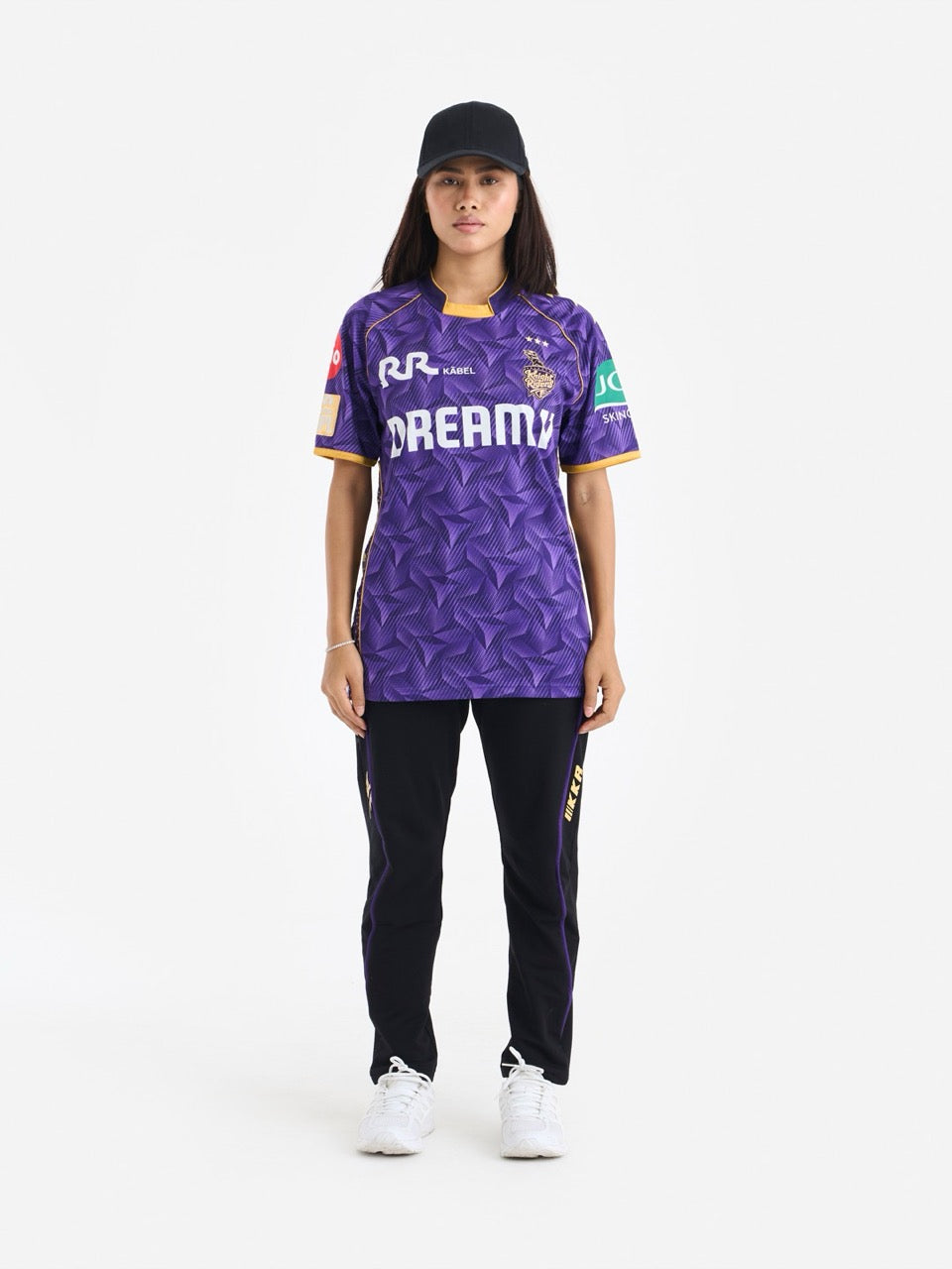 AForged in bright purple and gold, the new Kolkata Knight Riders jersey is a testament to the team’s glorious journey and unbreakable spirit. The design revolves around three-pointed stars, a powerful symbol of KKR’s IPL victories in 2012, 2014, and 2024. A tribute to the past, a celebration of the present, and a vision for future triumphs. Korbo, Lorbo, Jeetbo!