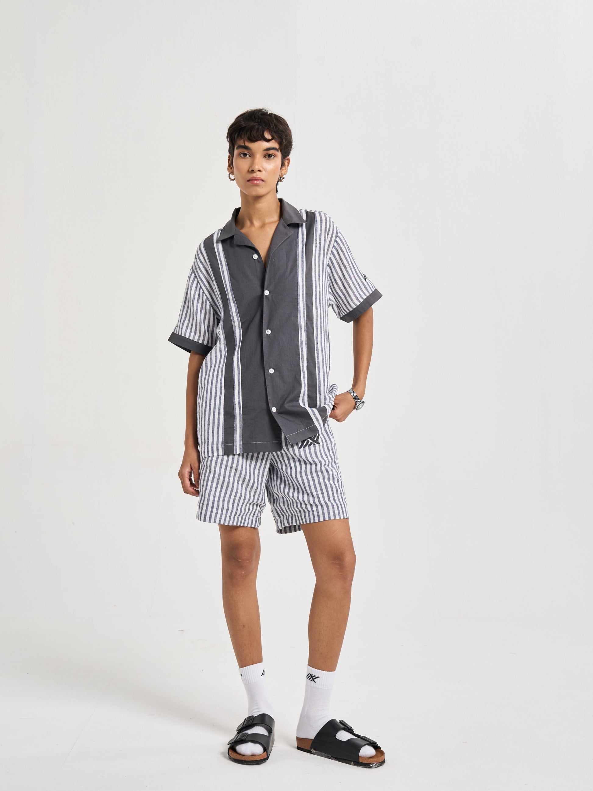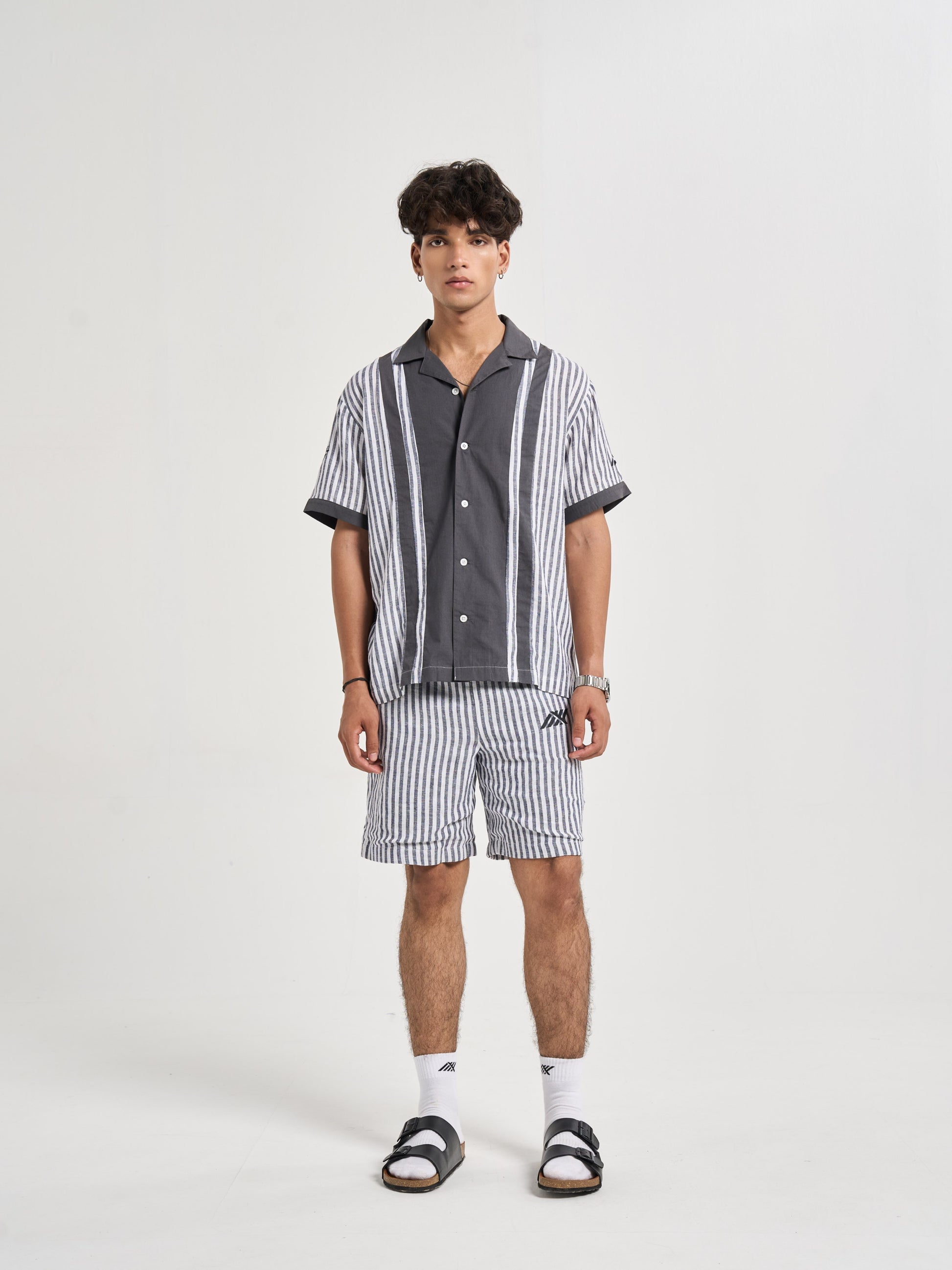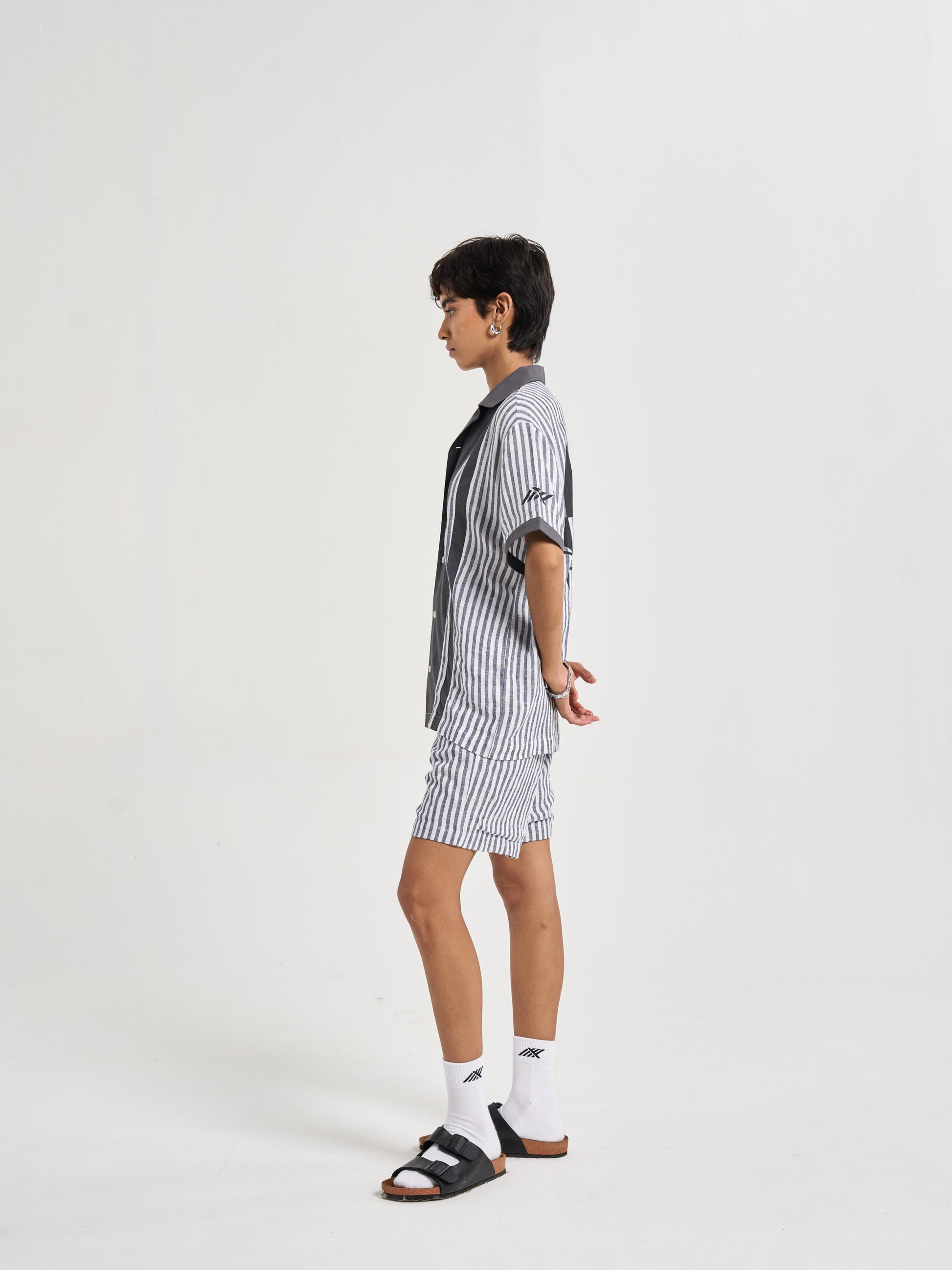 The Trackstar Linen Shirt, made from breathable linen, offers all-day comfort with a bold, race-inspired design. This half-sleeve shirt features vertical stripes with contrast cut-and-sew panels, providing a relaxed fit ideal for casual wear. The back is adorned with an oversized SIX5SIX race-inspired Star graphic, while the sleeves showcase bold racing motifs and branding. A distinctive piece that effortlessly blends style and comfort. .