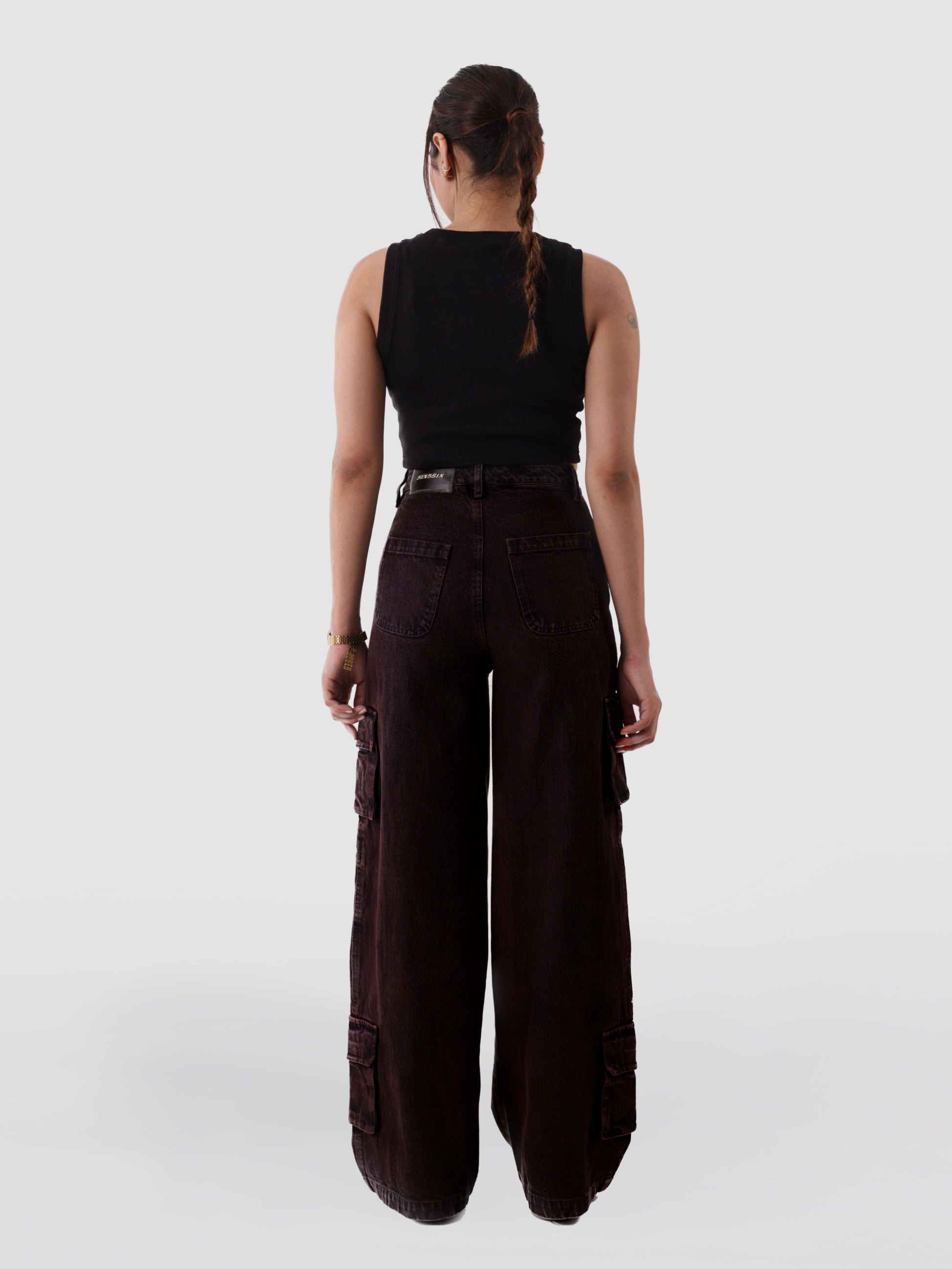 Constructed from heavy-washed denim with a black base and deep red undertones, these cargos channel the same structure and grit as our Diesel Cargos, now with a darker mood.Features multi-pocket utility, tonal SIX5SIX embroidery, and contrast stitch detailing across the leg. Finished with a wide-leg silhouette built for movement and edge.Crafted from heavy-washed denim, these cargos feature a black base with deep red undertones, echoing the structure and grit of our Diesel Cargos but with a darker aesthetic. They offer multi-pocket utility, tonal SIX5SIX embroidery, and contrast stitch detailing across the leg, all finished with a wide-leg silhouette designed for movement and an edgy look..