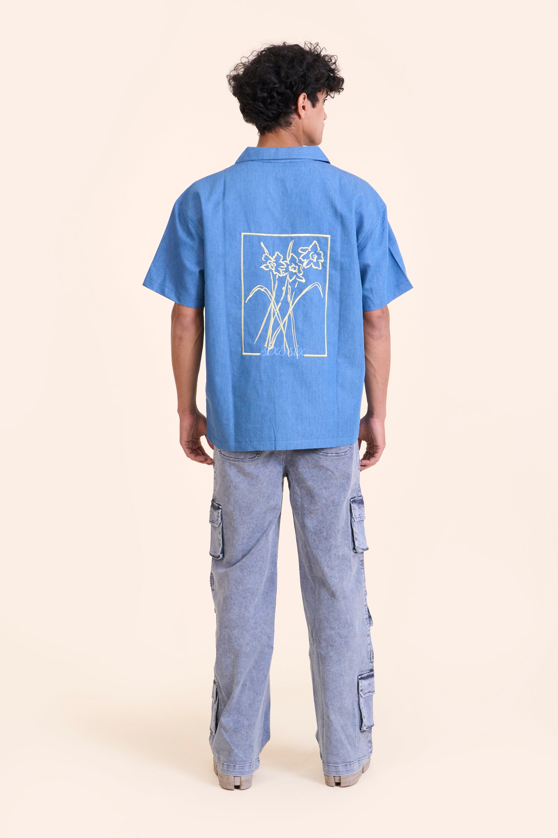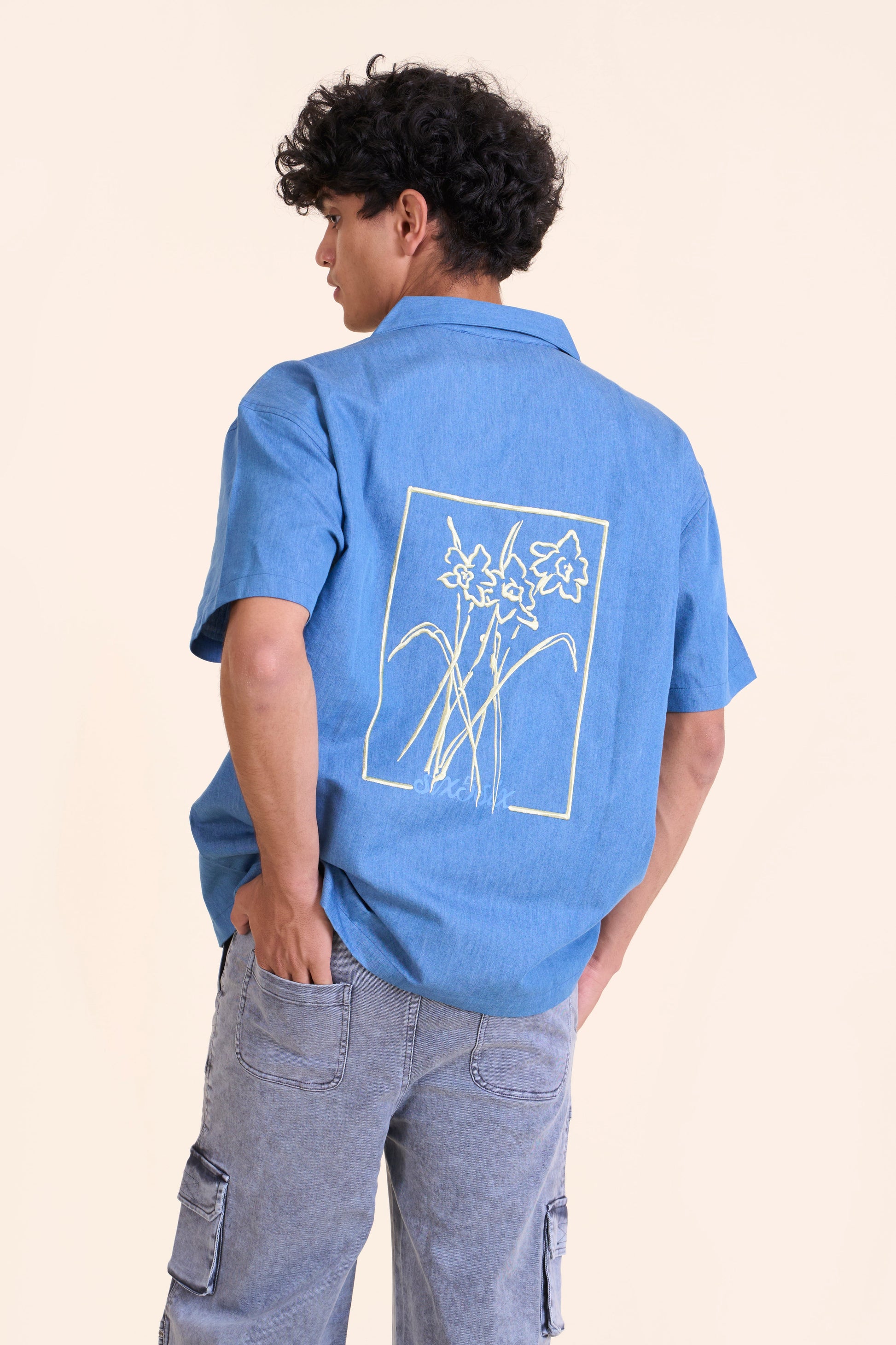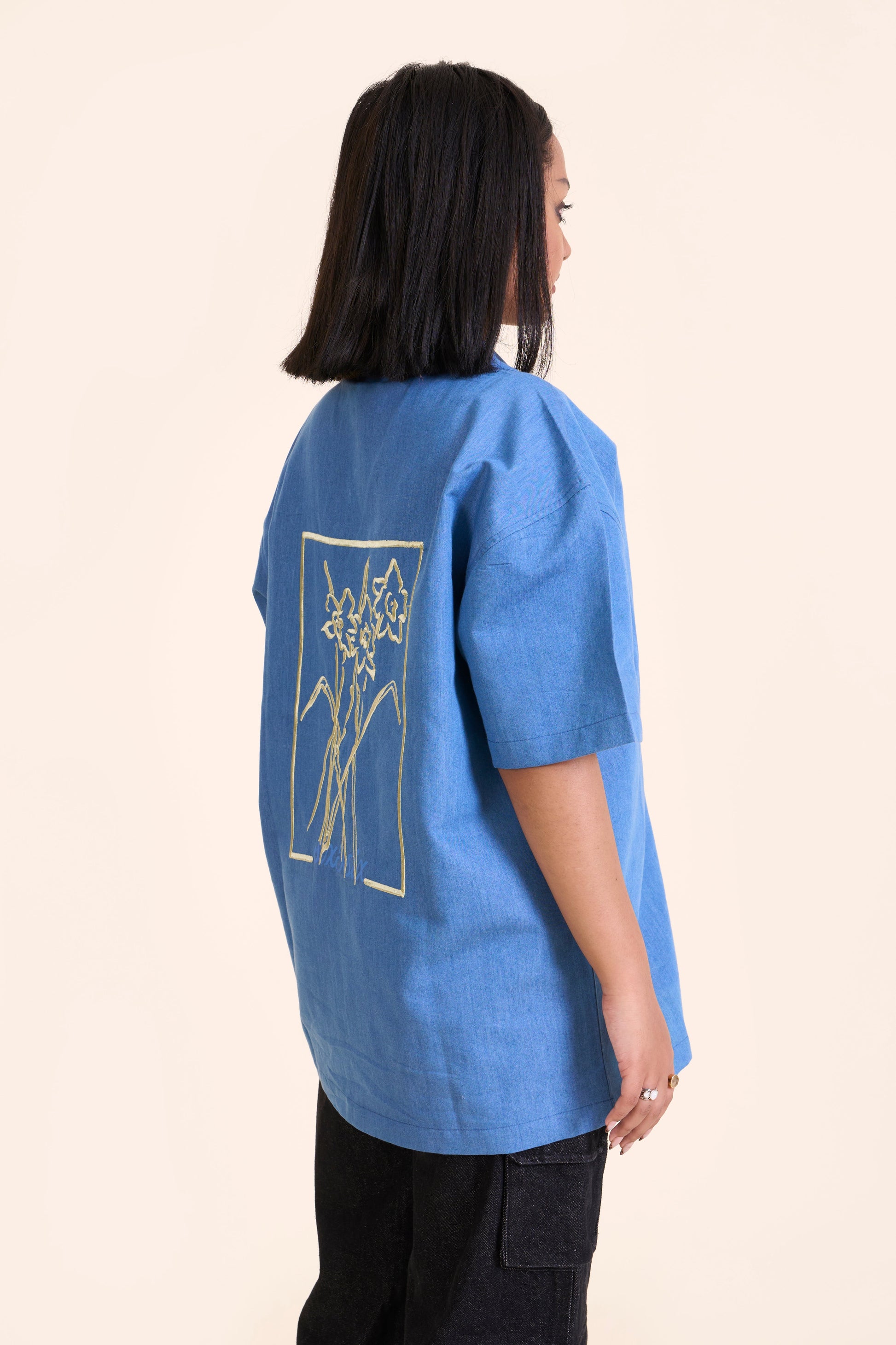 A classic denim shirt with a bright floral embroidery creates a perfect contrast for the perfect summer shirt!