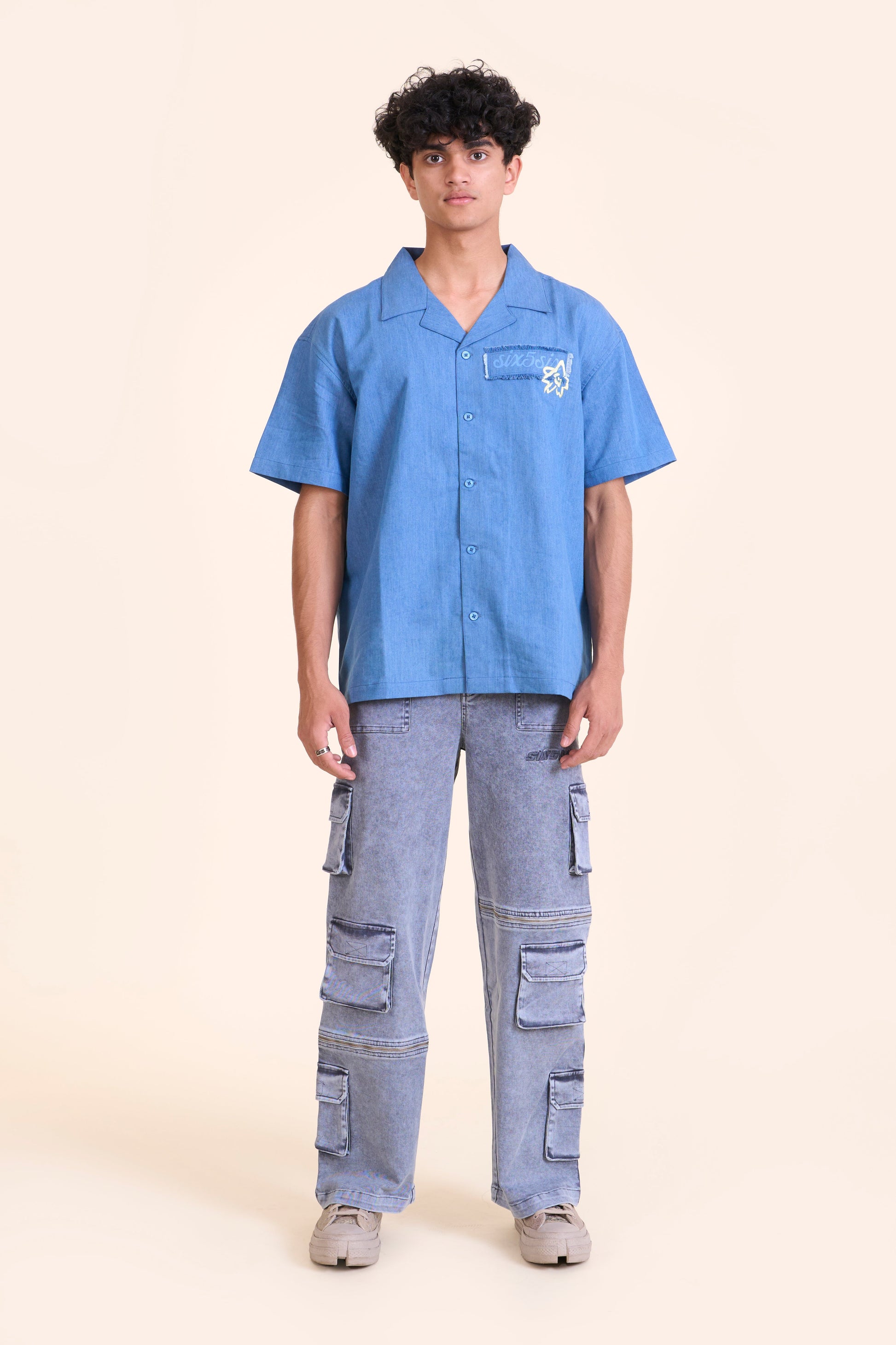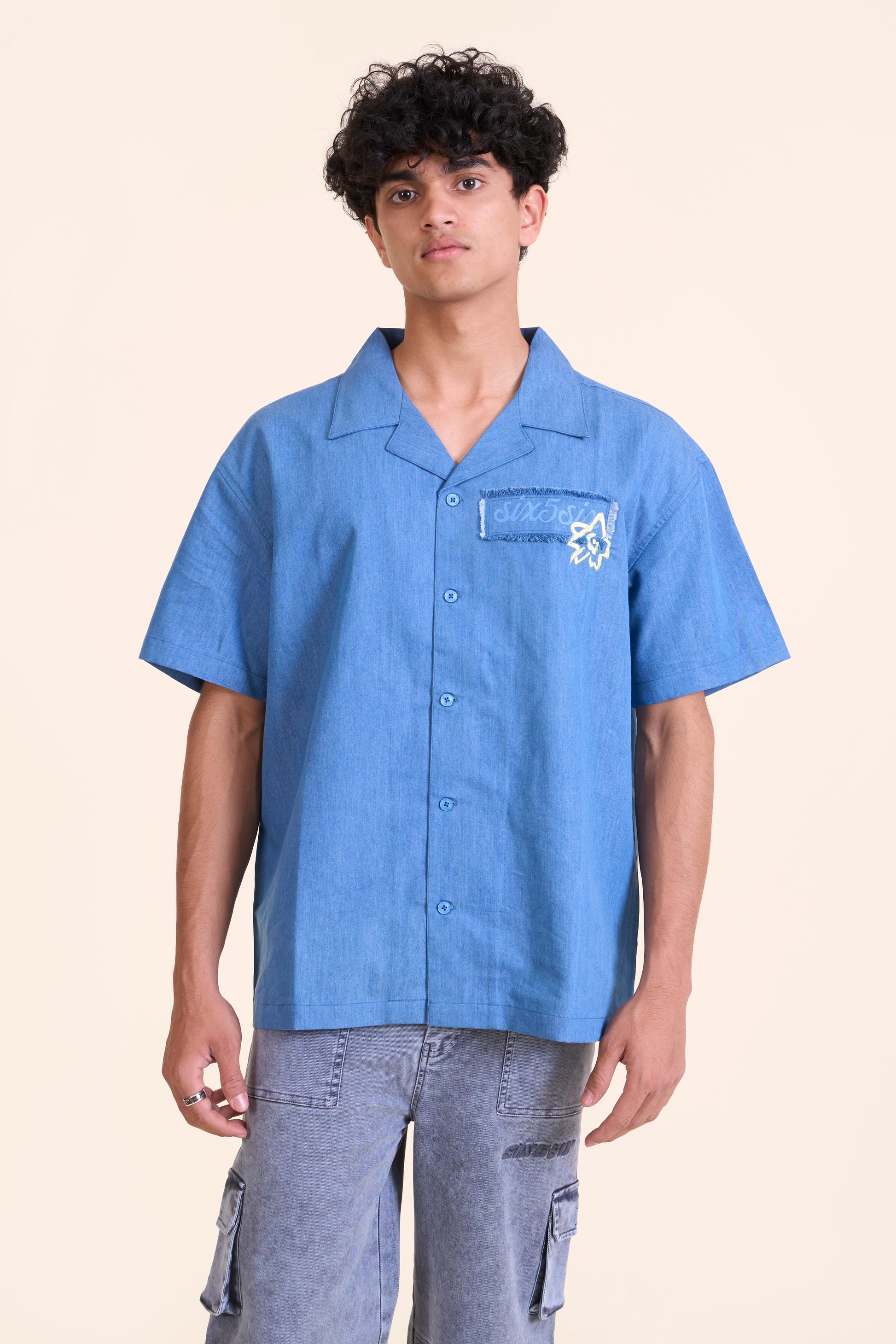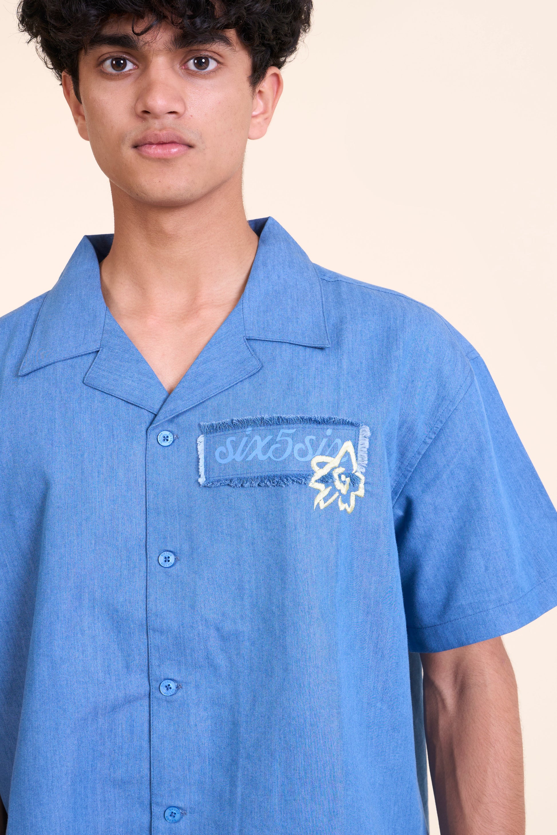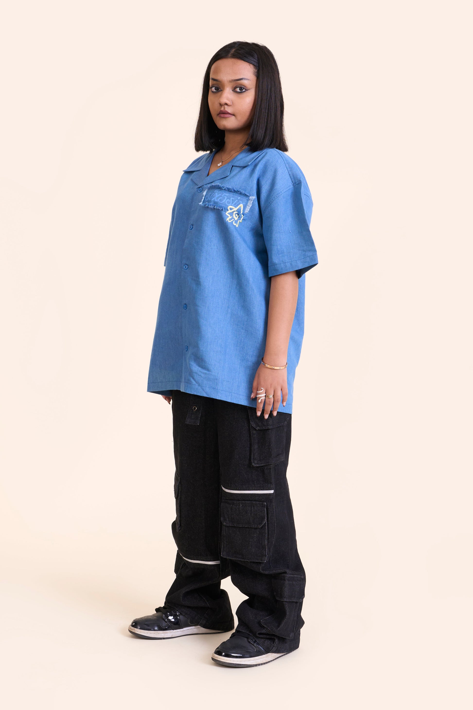 A classic denim shirt with a bright floral embroidery creates a perfect contrast for the perfect summer shirt!