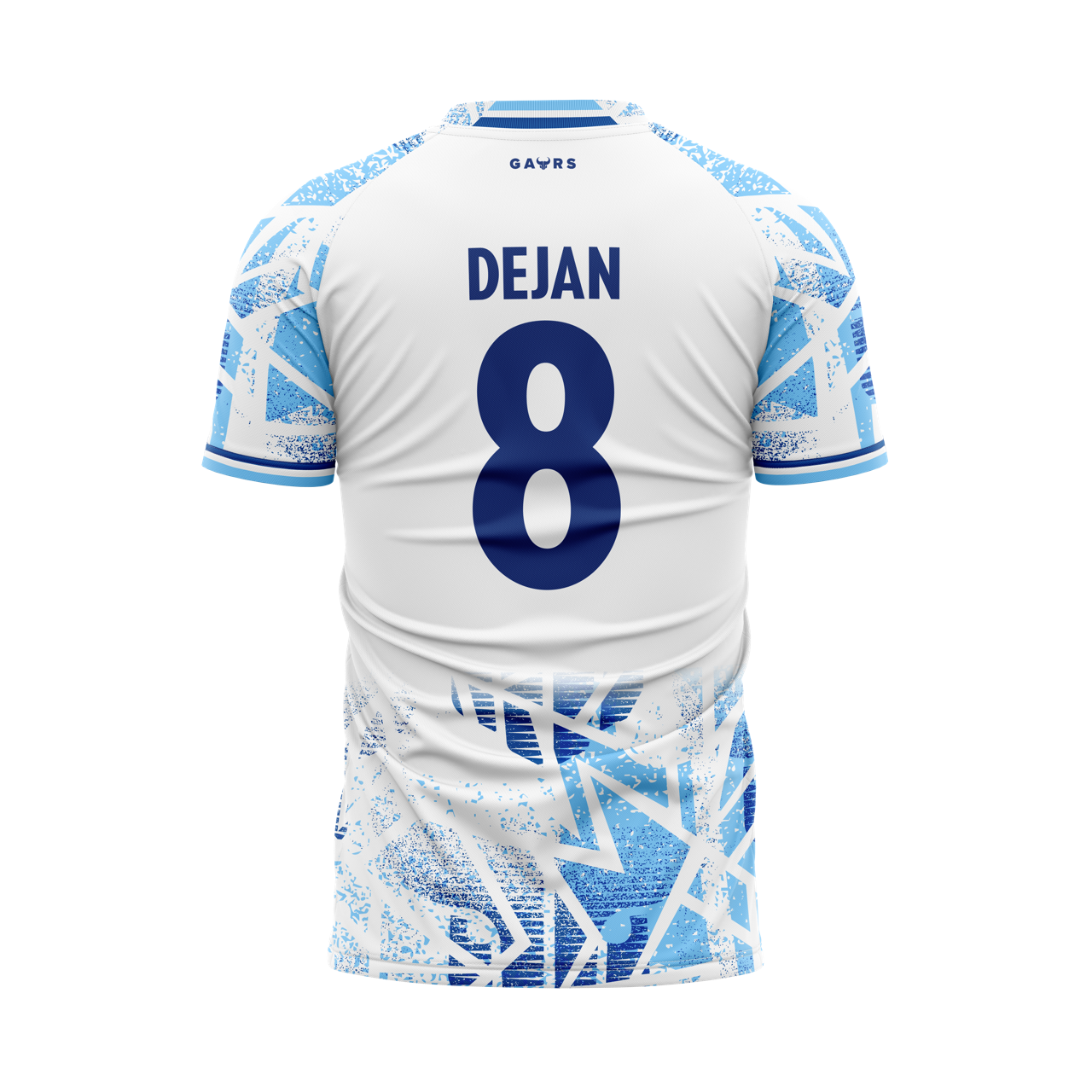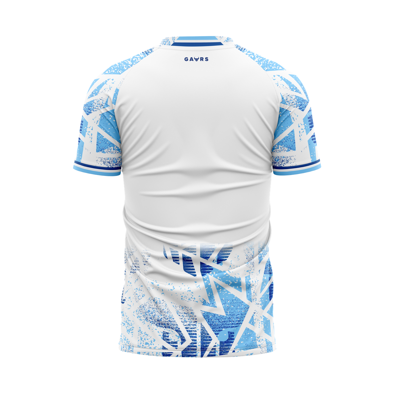 The FC Goa 2025/26 Away Jersey pairs a clean white base with sky blue and royal blue detailing. The Gaur-inspired print, fading textures, and bold zig-zag graphic capture both unity and unpredictable energy, finished with a monotone crest for a sleek modern look.