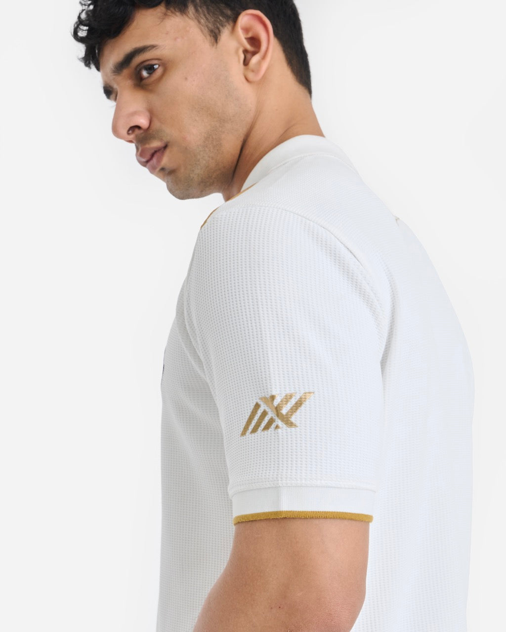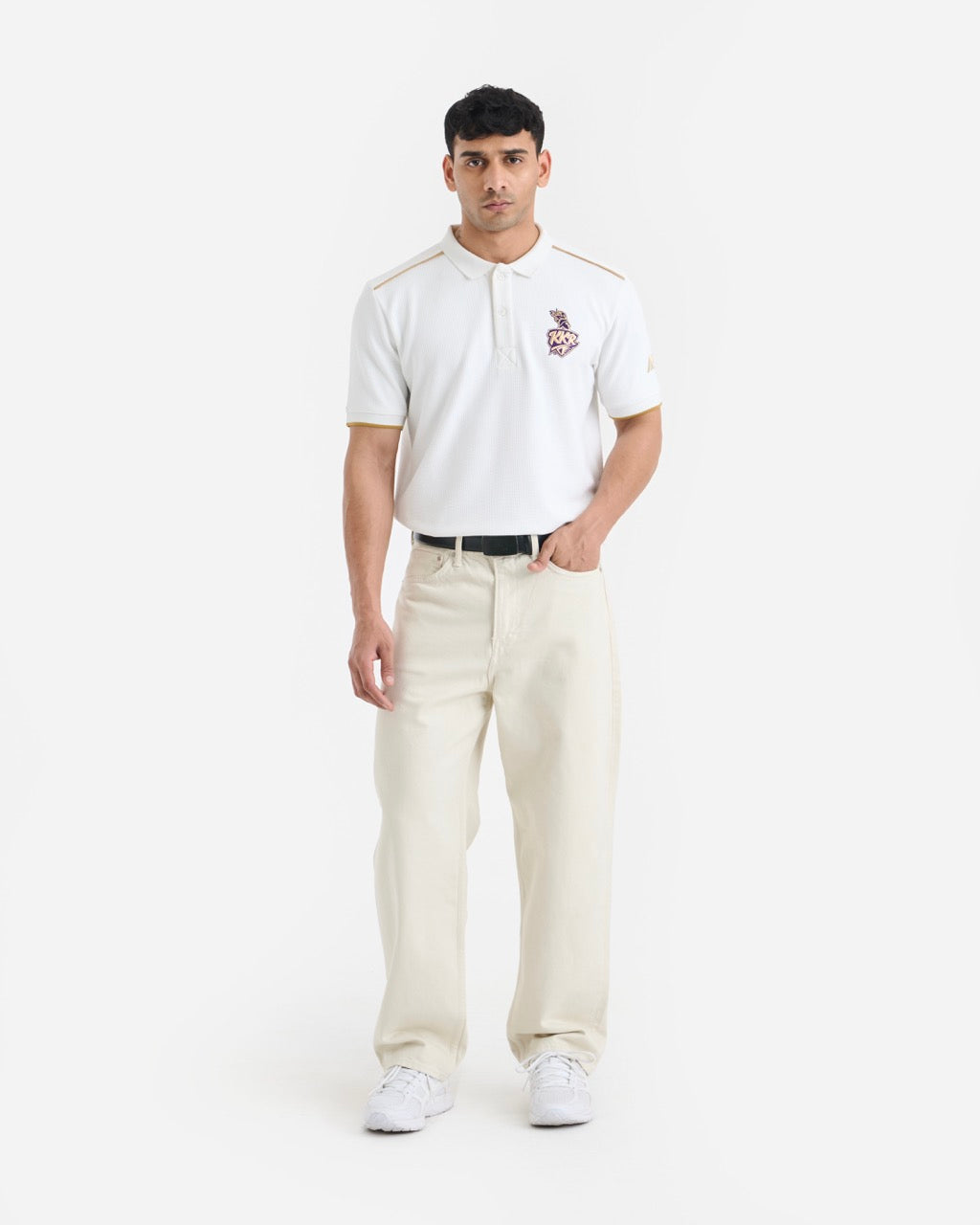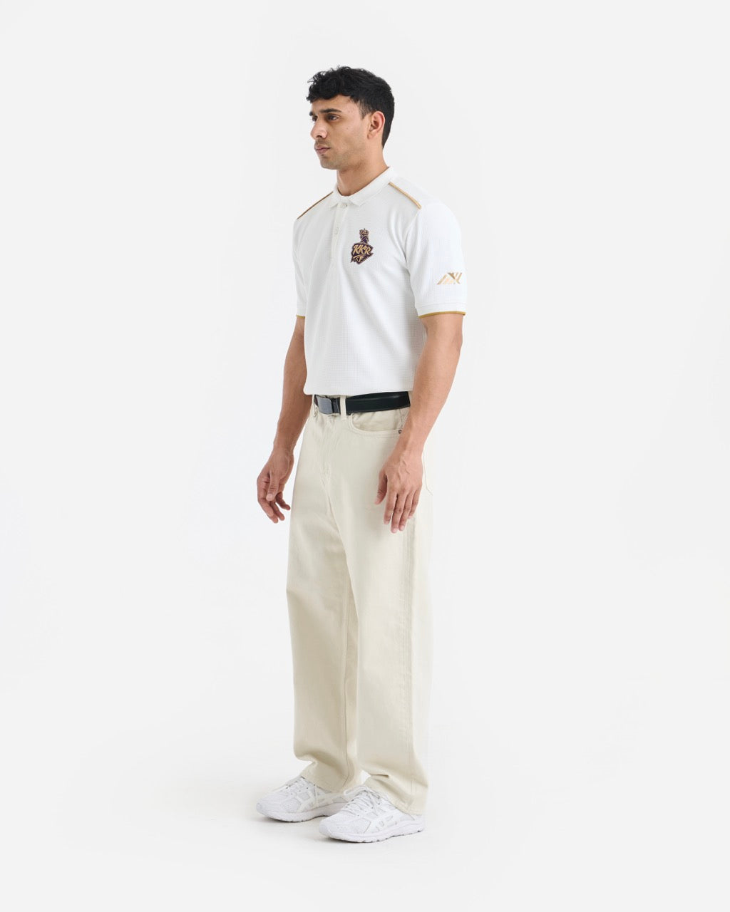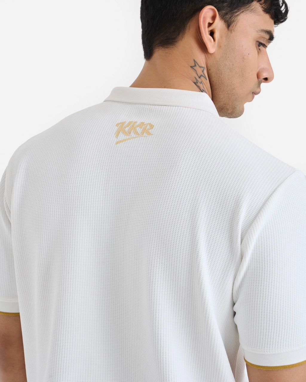 Elevate your everyday look with the KKR White Travel Polo, a perfect blend of sophistication and sporty appeal. Crafted from premium fabric, this polo ensures breathability, durability, and all-day comfort, making it ideal for travel and casual wear. The golden SIX5SIX logo on the left sleeve completes the look with a mark of quality craftsmanship.