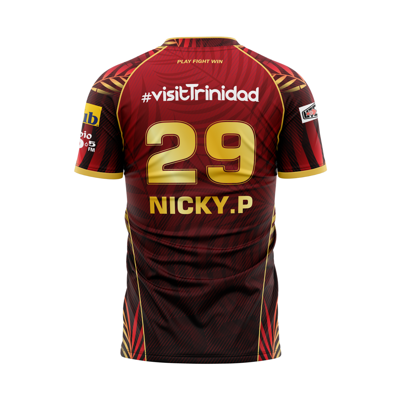 Inspired by the palm-lined shores of Trinidad & Tobago, this jersey blends island beauty with bold energy. Featuring a vibrant red-to-black gradient and dynamic palm leaf patterns, it captures the spirit of the tropics. Gold-accented sleeves and side panels add a touch of elegance, making this design a perfect fusion of power, style, and heritage.